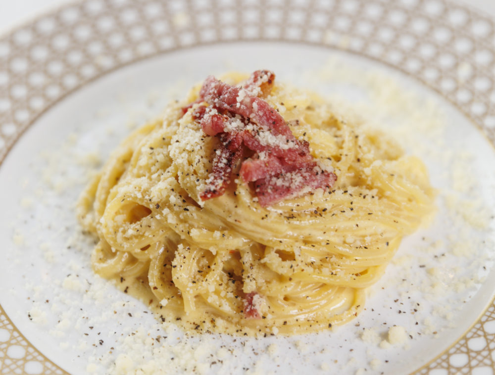松阪牛入りサーロインベーコンのカルボナーラ